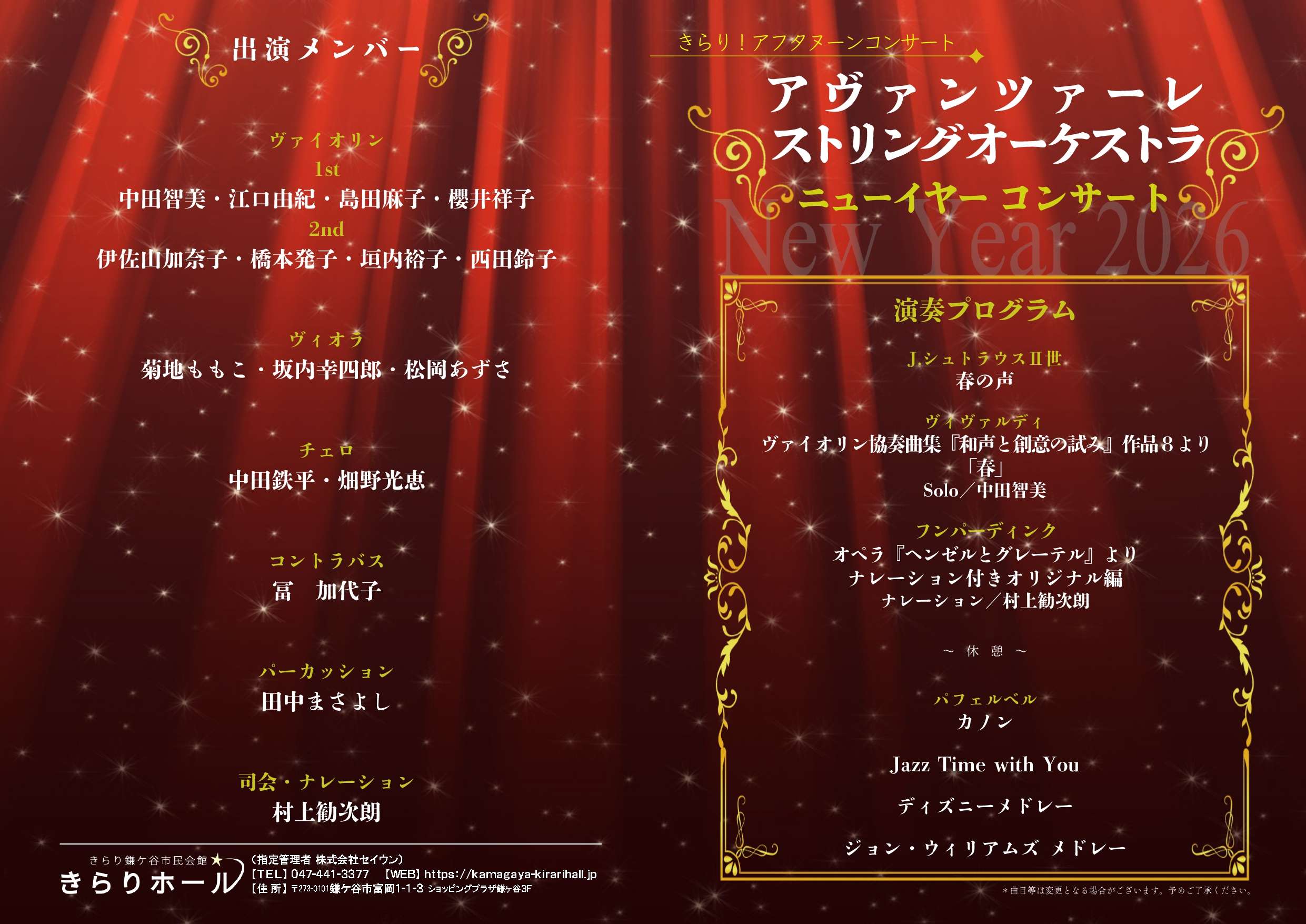 2026年01月19日更新 アヴァンツァーレ ストリングオーケストラ ニューイヤーコンサート