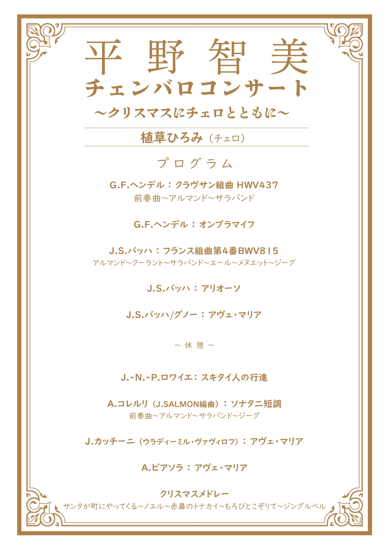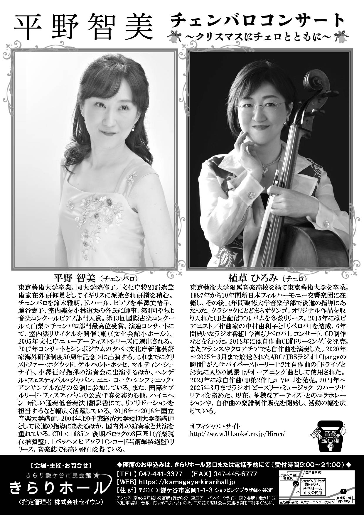 2025年12月22日更新 平野智美 チェンバロコンサート〜クリスマスにチェロとともに〜