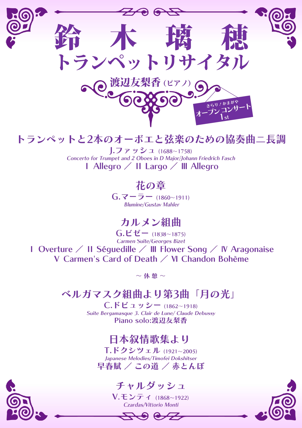 2025年12月09日更新 きらりかまがやオープンコンサート1st 鈴木璃穂トランペットリサイタル ピアノ渡辺友梨香